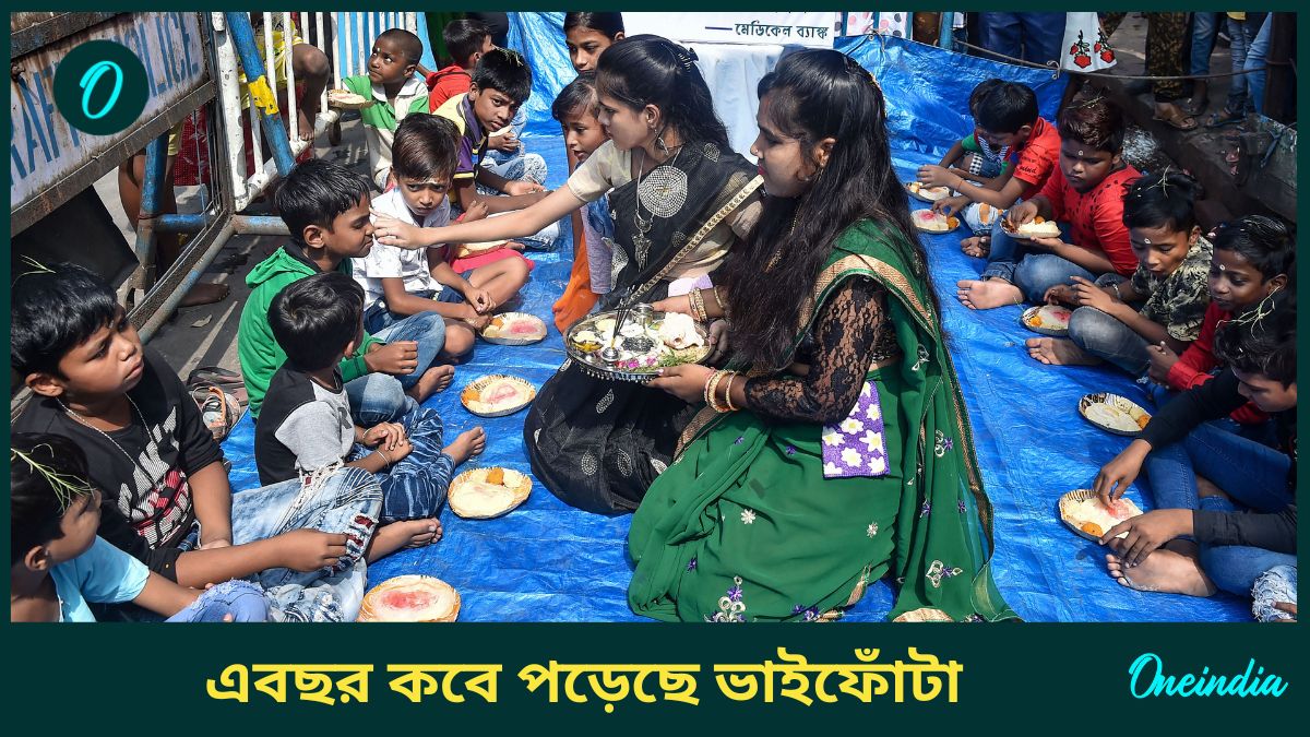 ফোঁটা দেওয়ার সময় একটি প্লেটে সিঁদুর, চন্দন, ফুল, ফল, মিষ্টি রাখতে রাখেন আবার অনেকে পান, সুপারি ও রাখেন। চলতি বছর কবে পড়েছে ভাইফোঁটা। জানুন ভাইফোঁটা দেওয়ার শুভ সময় সম্পর্কে। অক্টোবর মাসের ৩ তারিখ, রবিবার পড়েছে ভাইফোঁটা।