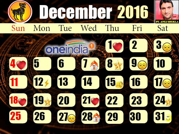 জ্যোতিষ ক্যালেন্ডার : ডিসেম্বর ২০১৬ কেমন যাবে দেখে নিন ক্যালেন্ডারে