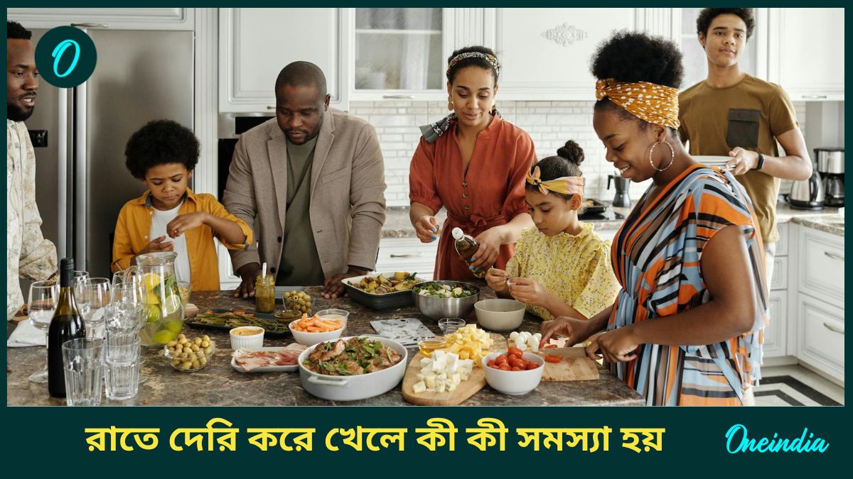 দেরি করে রাতে খেলে ঘুমোতে পারবেন না। পেট ভারী হয়ে থাকবে। ঘুম আসতে দেরি হবে। এমনকি মাথাব্যথার সৃষ্টি হতে পারে।
