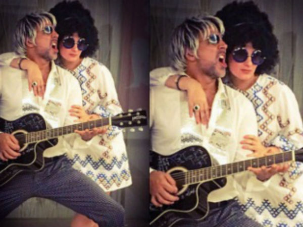সম্প্রতি ইনস্তাগ্রামে নিজেদের এই মজাদার ছবিটি পোস্ট করেছেন অক্ষয়-টুইঙ্কল। অক্ষয়ের ব্লন্ড চুল আর হাতে গিটার, আর টুইঙ্কলের কালো কোঁকড়া চুলের উইগে একেবারে রক অ্যান্ড রোল অবতারে আকি-টুইঙ্কল। [ (ছবি) অক্ষয় কুমারের সঙ্গে দীপিকার চোখ ধাঁধানো কেমিস্ট্রি! টুইঙ্কল আপনি কি দেখছেন?]