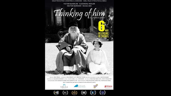 রবীন্দ্রনাথ ঠাকুরের ১৬১ তম জন্মবার্ষিকী উপলক্ষে সারা দেশে আগামী ৬ মে মুক্তি পেতে চলেছে ইন্দো-আর্জেন্টিনীয় ছবি "থিংকিং অফ হিম"। রবীন্দ্রনাথ ঠাকুরের ১৬১ তম জন্মবার্ষিকী উপলক্ষে সারা ভারতের প্রেক্ষাগৃহে মুক্তি পাবে এই ছবিটি। ছবিটির সহ-প্রযোজনা করেছেন পুরস্কারপ্রাপ্ত ভারতীয় চলচ্চিত্র নির্মাতা সুরজ কুমার।