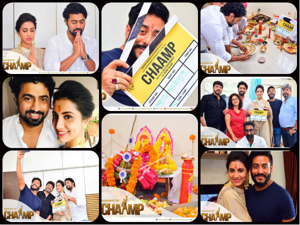 চ্যাম্প ছবিতে অভিনয় দিয়েই টলিউডে পা রাখছেন রুক্মিনী। শুভ মহরতে পরিচালক রাজ চক্রবর্তীর সঙ্গে পোজ দিলেন।