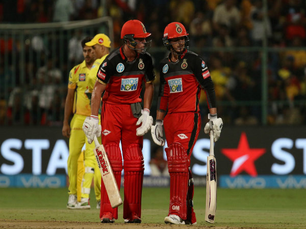এদিন মহেন্দ্র সিং ধোনি টসে জিতে বিরাটদের প্রথমে ব্যাট করতে পাঠান। শুরুটা ভালো করে আরসিবি। বিরাট ১৮ রানে ফিরে গেলেও দ্বিতীয় উইকেটে খেলা ধরে পাল্টা আক্রমণ করেন কুইন্টন ডি কক ও এবি ডিভিলিয়ার্স। ডি কক ৩৭ বলে ৫৩ রান করেন। এবিডি করেন ৩০ বলে ৬৮ রান।