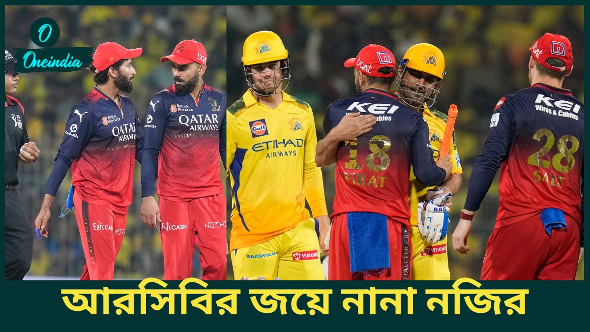 প্রায় ১৭ বছর পর চিপকে চেন্নাই সুপার কিংসকে হারাল আরসিবি। এই জয়ে তৈরি হলো নানা নজির।