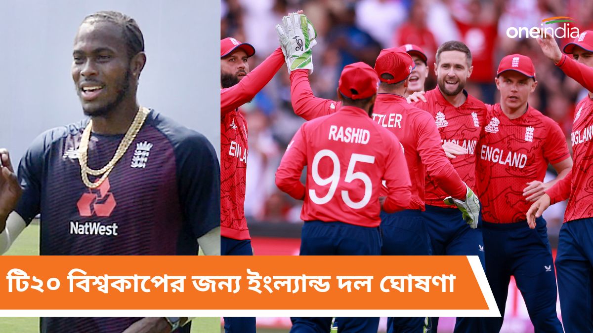 টি২০ বিশ্বকাপের জন্য ঘোষিত হল ইংল্যান্ড দল। নিউজিল্যান্ড, দক্ষিণ আফ্রিকার পর তৃতীয় দল হিসেবে বিশ্বকাপের স্কোয়াড ঘোষণা করল ইংল্যান্ড। গতবারের চ্যাম্পিয়নরা ১৫ জনের স্কোয়াড ঘোষণা করেছে। সব থেকে বড় চমক দীর্ঘদিন পর আবার ইংল্যান্ড দলে ফিরলেন জোফ্রা আর্চাার।