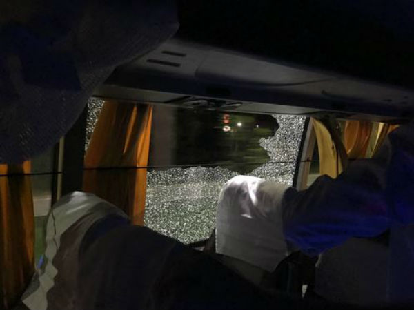 <blockquote class="twitter-tweet blockquote" data-lang="en"><p lang="en" dir="ltr">Pretty scary having a rock thrown through the team bus window on the way back to the hotel!! <a href="https://t.co/LBBrksaDXI">pic.twitter.com/LBBrksaDXI</a></p>— Aaron Finch (@AaronFinch5) <a href="https://twitter.com/AaronFinch5/status/917813800866164736?ref_src=twsrc%5Etfw">October 10, 2017</a></blockquote> <script async src="//platform.twitter.com/widgets.js" charset="utf-8"></script>