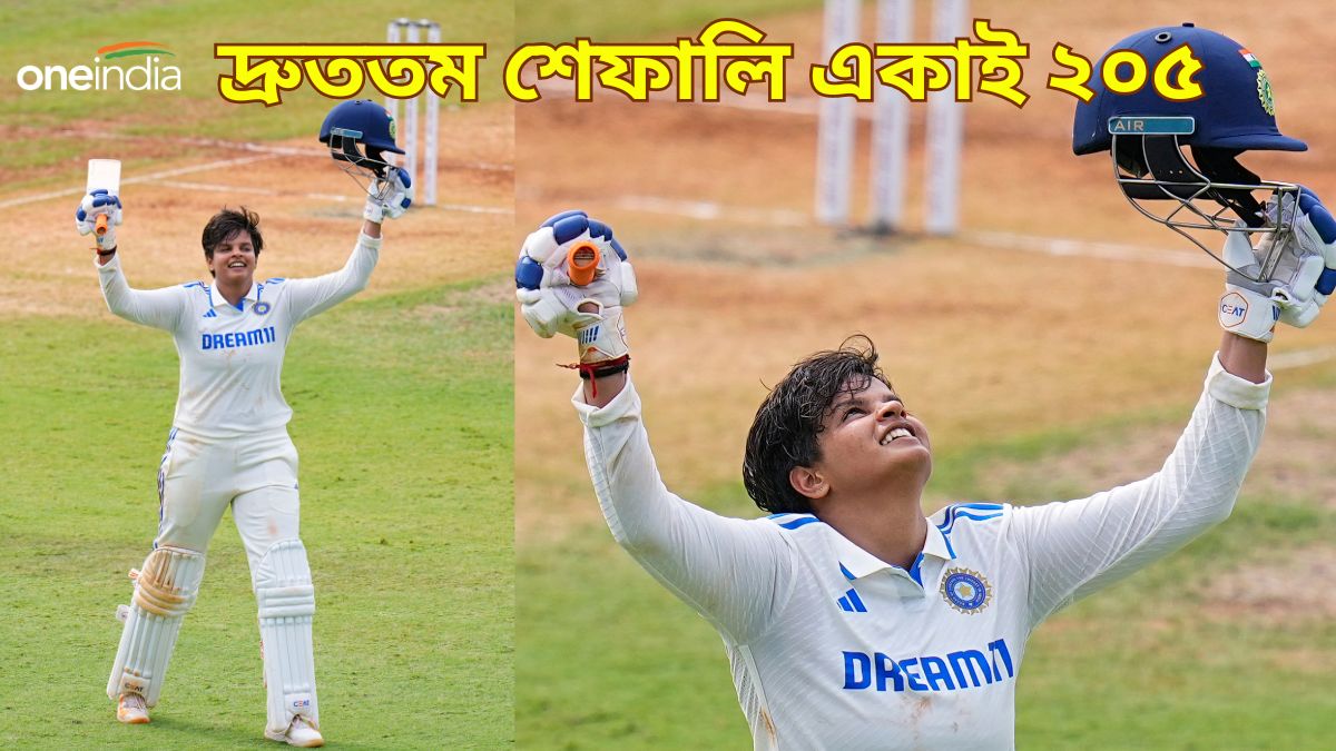 মিতালি রাজের পর শেফালিই দ্বিতীয় ভারতীয় মহিলা ক্রিকেটার, যিনি টেস্টে দ্বিশতরান হাঁকালেন। প্রথম দিনেই হরমনপ্রীত কৌরের ভারত তুলল ৯৮ ওভারে ৪ উইকেটে ৫২৫ রান। যা মহিলাদের টেস্ট তো বটেই, টেস্ট ক্রিকেটেই কোনও একদিনে ওঠা সর্বাধিক রানের বিশ্বরেকর্ড।