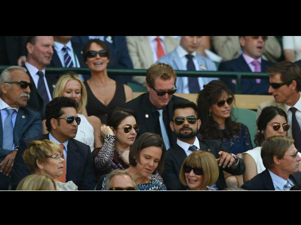 উইম্বলডনের অফিসিয়াল টুইটার হ্যান্ডেল সস্ত্রীক শচিন , এবং বিরাট কোহলি ও তাঁর বান্ধবী তথা অভিনেত্রী অনুষ্কা শর্মার ছবি পোস্ট করেছে। যেখানে দেখা যাচ্ছে শচীনের বাঁ পাশে রয়েছেন তাঁর স্ত্রী অঞ্জলি, তার পাশে বিরাট কোহলি, ও কোহলির পাশে অনুষ্কা।