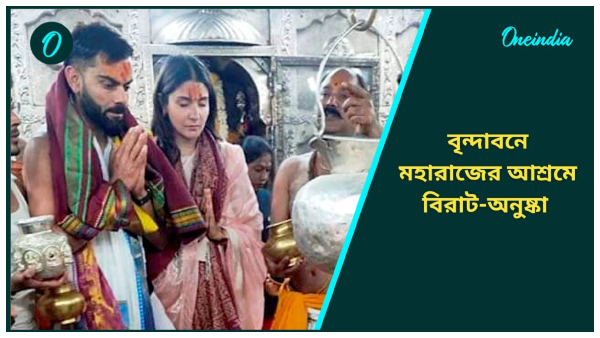 বৃন্দাবনের মতো তীর্থস্থানে দেশের অন্যতম চর্চিত দম্পতি হাজির হয়েছেন, শ্রী প্রেমানন্দ গোবিন্দ শরণ জি মহারাজেরআশ্রমে দেখা গেল বিরাট কোহলি ও অনুষ্কা শর্মাকে। মহরারজের আশীর্বাদ নিয়েই 'বিরুষ্কা' নতুন বছরের সূত্রপাত করলেন। মহারাজকে প্রশ্নও করেন অনুষ্কা।