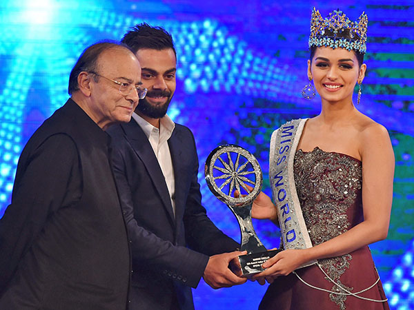 এক বিশেষ অনুষ্ঠানে সম্বর্ধিত হলেন ভারতীয় ক্রিকেট অধিনায়ক বিরাট কোহলি, এবং মিস ওয়ার্ল্ড মানুষী চিল্লর।
