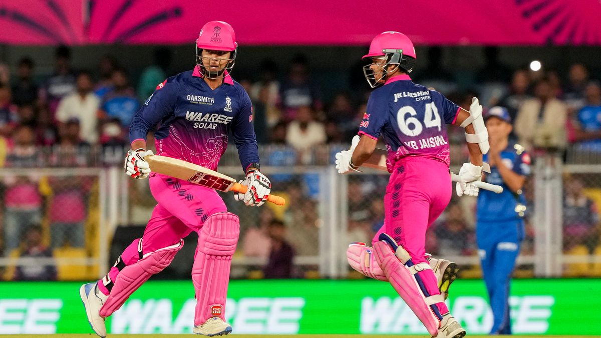 এর আগে, রাজস্থান রয়্যালস ব্যাট হাতে চরম আক্রমণাত্মক সূচনা করে। যশস্বী জয়সওয়াল দীপক চাহারের প্রথম ওভারেই ২২ রান সংগ্রহ করেন এবং বৈভব সূর্যবংশী জসপ্রীত বুমরাহকে প্রথম ওভারেই দুটি ছক্কা মারেন। এরপর জয়সওয়ালও ট্রেন্ট বোল্টকে পরপর দুটি ছক্কা হাঁকিয়ে রাজস্থানকে মাত্র ১৬ বলে ৫০ রানে পৌঁছে দেন। এদিন সূর্যবংশী, ধ্রুব জুরেল ও রিয়ান পরাগ আউট হলেও জয়সওয়াল অপরাজিত থেকে দলকে দেড়শো রানে পৌঁছে দেন।