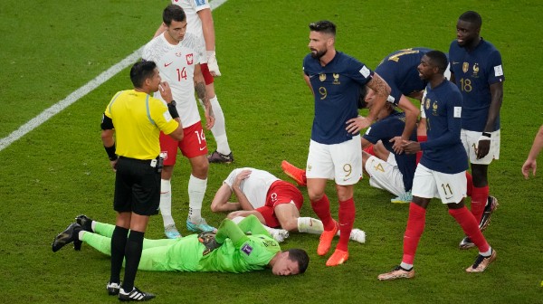 ৯০+১ মিনিটে পরিবর্ত ফুটবলার মার্কাস থুরামের পাস থেকে গোল করে ফ্রান্সের পক্ষে স্কোরলাইন ৩-০ করেন কিলিয়ান এমবাপে। এই গোলের সঙ্গেই ফ্রান্সের কোয়ার্টার ফাইনালে খেলার টিকিট কনফার্ম হয়ে যায়। কিন্তু খেলায় নাটক তখনও বাকি ছিল, অতিরিক্ত সময়ের শেষ মিনিটে ডায়োট উপামিকানোর বিরুদ্ধে পেনাল্টির নির্দেশ দেন রেফারি। উপামিকানো বলকে ব্লক করতে গিয়ে শরীরের সঙ্গে হাতকে পুরো জুড়ে দিয়ে ঘুরছিলেন নিজেদের পেনাল্টি বক্সে। কোনও রকম ভাবে বলে হাত লাগানোর প্রবণতা ছিল না তাঁর মধ্যে। সম্পূর্ণ ভাবে হাত আড়াল করার চেষ্টা করেন তিনি। কিন্তু তবুও তাঁর হাতে এসে লাগে বল। ফিফার নিয়ম বলে ইচ্ছাকৃত কোনও ফুটবলার নিজেদের বক্সে বলে হাত না লাগালে তা পেনাল্টি দেওয়া যায় না। অনিচ্ছাকৃত ভাবে হাতে লাগলে 'শিক্ষিত' রেফারিরা কখনও পেনাল্টি দেন না। কিন্তু এই বিশ্বকাপের অত্যন্ত নিম্নমানের রেফারিং-এর সাক্ষী থাকল সমগ্র বিশ্ব যখন ৩৯ বছর বয়সী ভেনিজুয়েলার রেফারি জেসাস ভেলেনজুইলা টিভির পর্দায় চোখ রেখেও এইটিকে হ্যান্ড বল অফেন্স করে পেনাল্টি উপহার দেন পোল্যান্ডকে। পোল্যান্ডের হয়ে পেনাল্টি নেওয়া রবার্ট লেওয়ানডস্কির শট বাঁচিয়ে দেন ফ্রান্সের গোলরক্ষক হুগো লরিস কিন্তু সেটিকে ফের রি-কিকের নির্দেশ দেয় ফ্রান্সের ফুটবলার নিয়ম ভাঙায়। সেই শট থেকে ফ্রান্সের অধিনায়ককে পরাস্ত করে লেওয়ানডস্কি গোল করে যান।