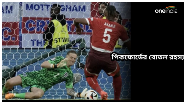 নির্ধারিত ৯০ মিনিট শেষ হল ১-১ গোলেই। এরপর খেলা গড়ায় অতিরিক্ত সময়ে। কিন্তু এই ৩০ মিনিটেও ইংল্যান্ডের যাবতীয় আক্রমণ রুখে দিল সুইসরা। ফলে ম্যাচ গড়াল টাইব্রেকারে। সেখানেই নায়ক হয়ে উঠেন ইংল্যান্ডের গোলরক্ষক পিকফোর্ড। কিন্তু টাইব্রেকারে রণকৌশল বোতলে লিখে মাঠে নেমেছিলেন ব্রিটিশ গোলরক্ষক! ম্যাচ শেষে পিকফোর্ড নন ফোকাসে তাঁর জলের বোতলই।