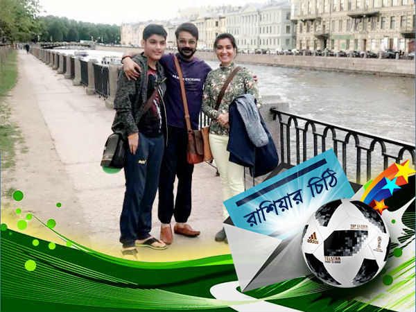 ছেলে তৃষাণজিৎ ও স্ত্রী অর্পিতাকে নিয়ে রাশিয়া উড়ে গিয়েছেন বিশ্বকাপের খেলা দেখতে।