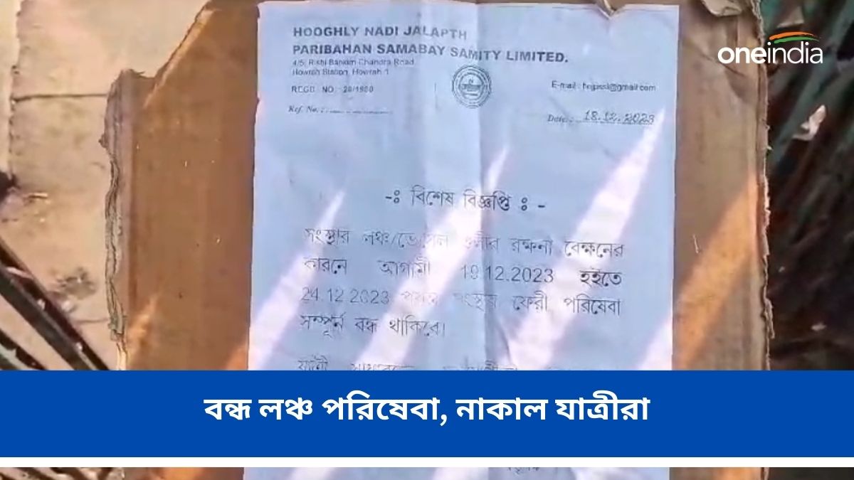 মঙ্গলবার থেকে কলকাতা হাওড়ার সমস্ত লঞ্চ পরিষেবা বন্ধ থাকছে। যাত্রীদের মধ্যে খুব সমস্যা দেখা দিয়েছে। সোমবার রাত পর্যন্ত যাত্রীরা ফেরিঘাট দিয়ে যাতায়াত করেছেন। তখনও আগাম কোনও বার্তা দেওয়া হয়নি বলে অভিযোগ। কর্মীদের থেকেও কোনও কথা শোনা যায়নি। মঙ্গলবার সকালে দেখা যায় একটি সাদা কাগজে নোটিশ লাগানো রয়েছে।