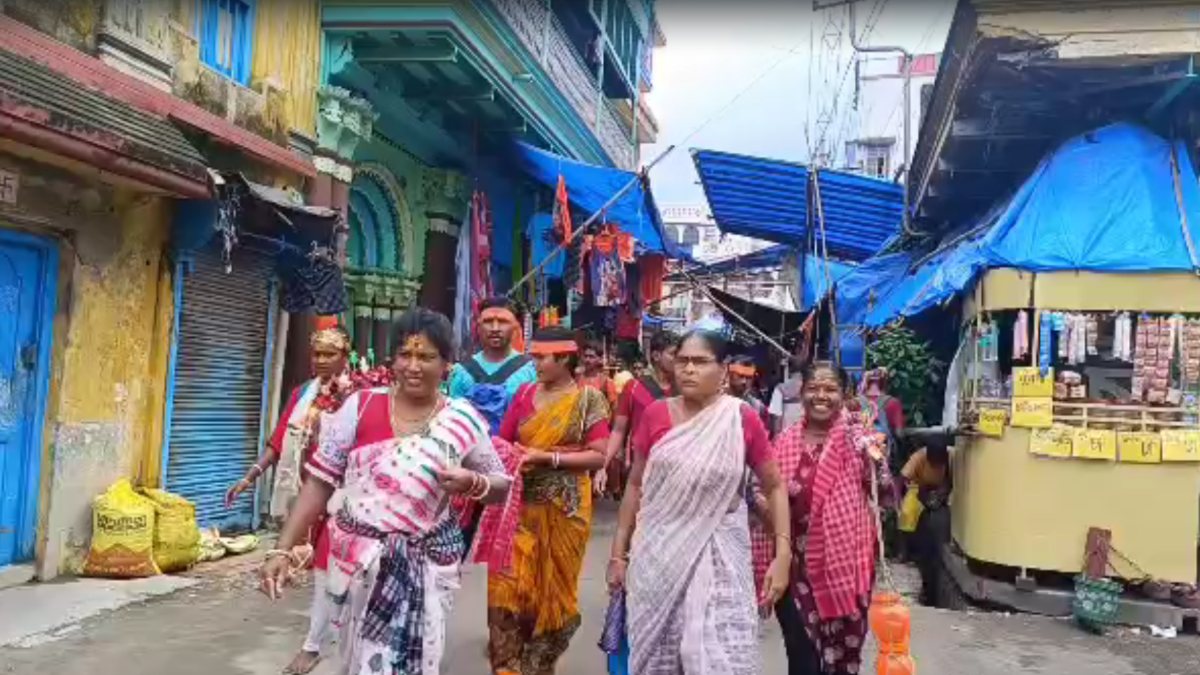 শ্রাবণ মাসের প্রথম রবিবার, বৈদ্যবাটির বিভিন্ন ঘাট থেকে জল তুলে পায়ে হেঁটে তারকেশ্বরের উদ্দেশ্যে রওনা দিচ্ছেন রাজ্যের বিভিন্ন প্রান্ত থেকে আসা পূণ্যার্থীরা। তবে এবার পূণ্যার্থীদের ঢল কিছুটা কম, জানাচ্ছেন স্থানীয় ব্যবসায়ীরা।