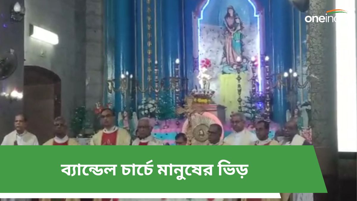 ব্যান্ডেল চার্চে কার্যত তিল ধারণের জায়গা নেই। রবিবার যে ভিড় দেখা গিয়েছিল, সোমবার সকাল থেকেই যেন আরও তা বেড়েছে। ব্যান্ডেল চার্চ এক অন্যতম দ্রষ্টব্য জায়গা। বছর শেষে এখানে ভিড় হবে। তা বলার অপেক্ষা রাখে না। চলতি বছরে অতীতের সমস্ত ভিড় ছাপিয়ে যাবে। এমনই মনে করা হচ্ছে।