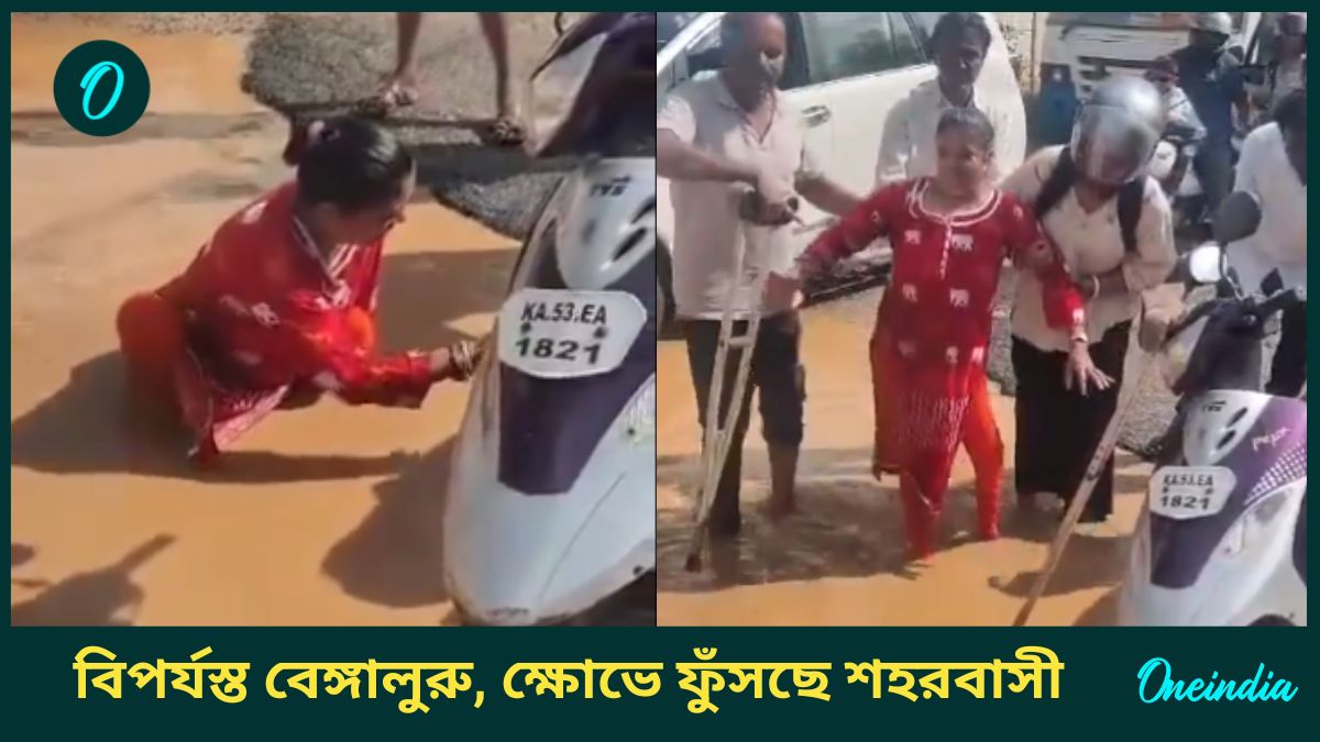 Bengaluru Rain: টানা ভারী বৃষ্টিতে বিপর্যস্ত বেঙ্গালুরু। জলের তলায় মিশে গিয়েছে রাস্তার খানাখন্দ। আর সেখানেই স্কুটি নিয়ে যেতে গিয়ে গর্তে পড়ে গেলেন বিশেষভাবে সক্ষম মহিলা (Specially Abled Woman)। ভিডিয়ো ভাইরাল (Viral Video) হতেই প্রশাসনের বিরুদ্ধে ক্ষোভে ফুঁসছে শহরবাসী। শুরু হয়েছে রাজনৈতিক চাপানউতোরও।