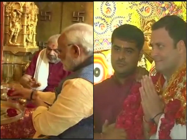 গুজরাতে প্রচারের শেষদিনে মন্দির দর্শনেই মন দিলেন মোদী-রাহুল