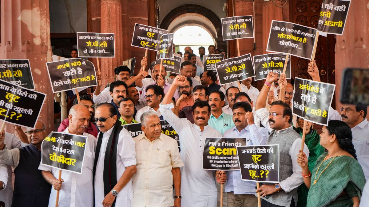 আদানির শেয়ার কেলেঙ্কারি ২০২৪-এর আগে বিরোধীদের কাছে বড় হাতিয়ার হয়ে উঠেছে। ফলে এই হাতিয়ারকে শান দিতে বদ্ধপরিকর কংগ্রেস-সহ বিরোধী দলগুলি। কংগ্রেস-সহ ১৬টি বিরোধী দল এক মঞ্চে এসে প্রতিবাদ গড়ে তুলছে। তাঁরা সংসদে প্রতিবাদ জানিয়েই ক্ষান্ত নন। বিরোধী দলের সাংসদরা সম্মিলিত হয়ে সংসদ থেকে ইডি অফিস পর্যন্ত মিছিল করেছেন।