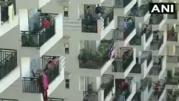 এদিন নয়ডার একটি সোসাইটিতে দেখা গিয়েছে একযোগে মানুষ কীভাবে করতালির মধ্য দিয়ে বার্তা দিচ্ছেন অত্যাবশ্যকীয় পরিষেবায় নিযুক্তদের প্রতি।