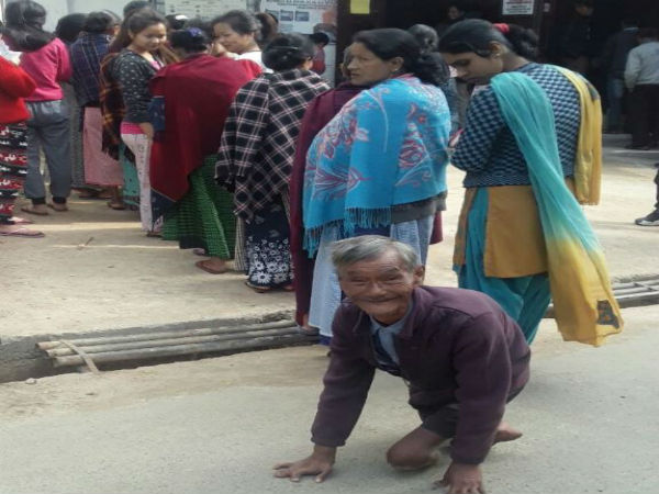 মেঘালয়ের খেলিশং-এর ভোটগ্রহণ কেন্দ্রে প্রতিবন্ধী ভোটার ওয়েন রানি