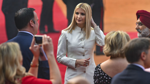 এই অনুষ্ঠানের জন্য ইভাঙ্কা ডিজাইনার অনিতা ডোঙ্গরের ইন্দো-ওয়েস্টার্ন ফিউশান পোশাকে সেজেছিলেন। তাঁর পরনে এদিন ছিল ফুল-স্লিভ গলাবন্ধ সাদা রঙের শেরওয়ানি, যেটি তৈরি হয়েছে মুর্শিদাবাদ সিল্ক দিয়ে। শেরওয়ানিতে রয়েছে ধাতুর বোতাম যা ইভাঙ্কাকে রাজকীয় লুকস দিয়েছে। এর সঙ্গে ইভাঙ্কা একই রঙের প্যান্টস পরেছিলেন। ৩৮ বছরের ইভাঙ্কার লুকস সম্পূর্ণ হয়েছে সাদা রঙের ব্যালেরিনা জুতোতে। চুল তাঁর খোলাই ছিল এবং তা মধ্যভাগ থেকে ভাগ করা।