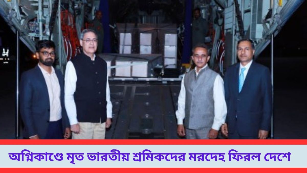 দক্ষিণ কুয়েতে বিধ্বংসী অগ্নিকাণ্ডে মৃত ভারতীয়দের মরদেহ নিয়ে ফিরল বায়ুসেনার সি-১৩০জে বিমান। শুক্রবার ভোরেই ভারতীয়দের দেহ নিয়ে সেই বিমান কুয়েত থেকে যাত্রা শুরু করে। বেলা ১১টা নাগাধ বায়ুসেনার বিশেষ বিমান কেরলের এর্নাকুলাম বিমানবন্দরে অবতরণ করে। বিমানবন্দরে উপস্থিত ছিলেন মুখ্যমন্ত্রী পিনারাই বিজয়ন সহ কেরল সরকারের উচ্চপদস্থ মন্ত্রী-আমলারা।