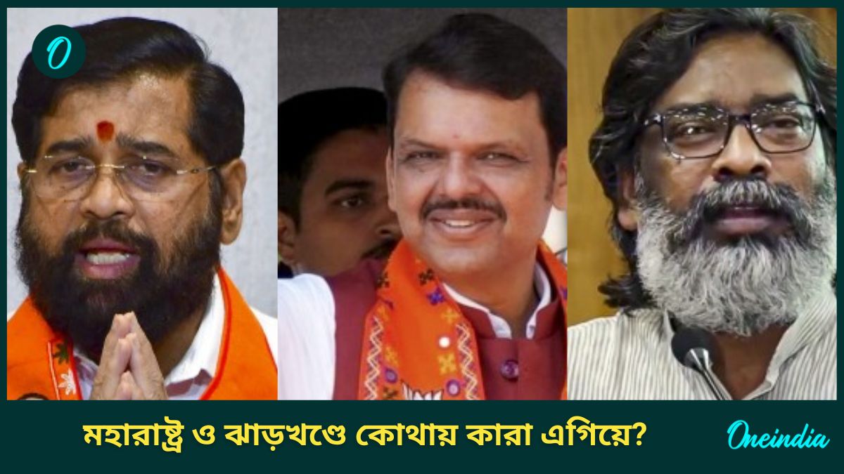 Maharashtra and Jharkhand poll Result: এগিয়ে শিন্ডে, ফড়নবীশ, হেমন্ত; মহারাষ্ট্র ও ঝাড়খণ্ডে কী বলছে ট্রেন্ড?