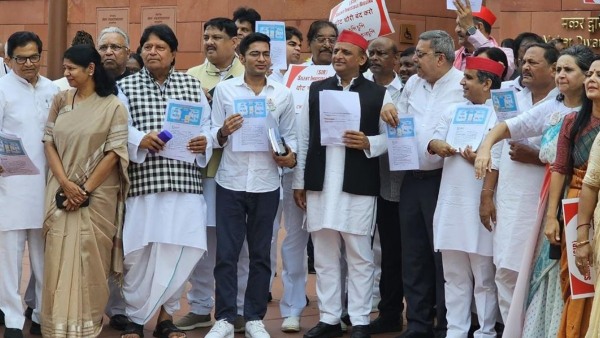 বিহারে এসআইআর প্রত্যাহারের দাবিতে আজও উত্তাল সংসদ। বিরোধীদের হৈ-হট্টগোলের জেরে আপাতত বেলা ২টো অবধি মুলতবি হয়ে গিয়েছে রাজ্যসভার অধিবেশন। অধিবেশন শুরুর আগে স্পেশ্যাল ইনটেনসিভ রিভিসনের বিরুদ্ধে এককাট্টা হয়ে বিক্ষোভ দেখালেন বিরোধী সাংসদরা।