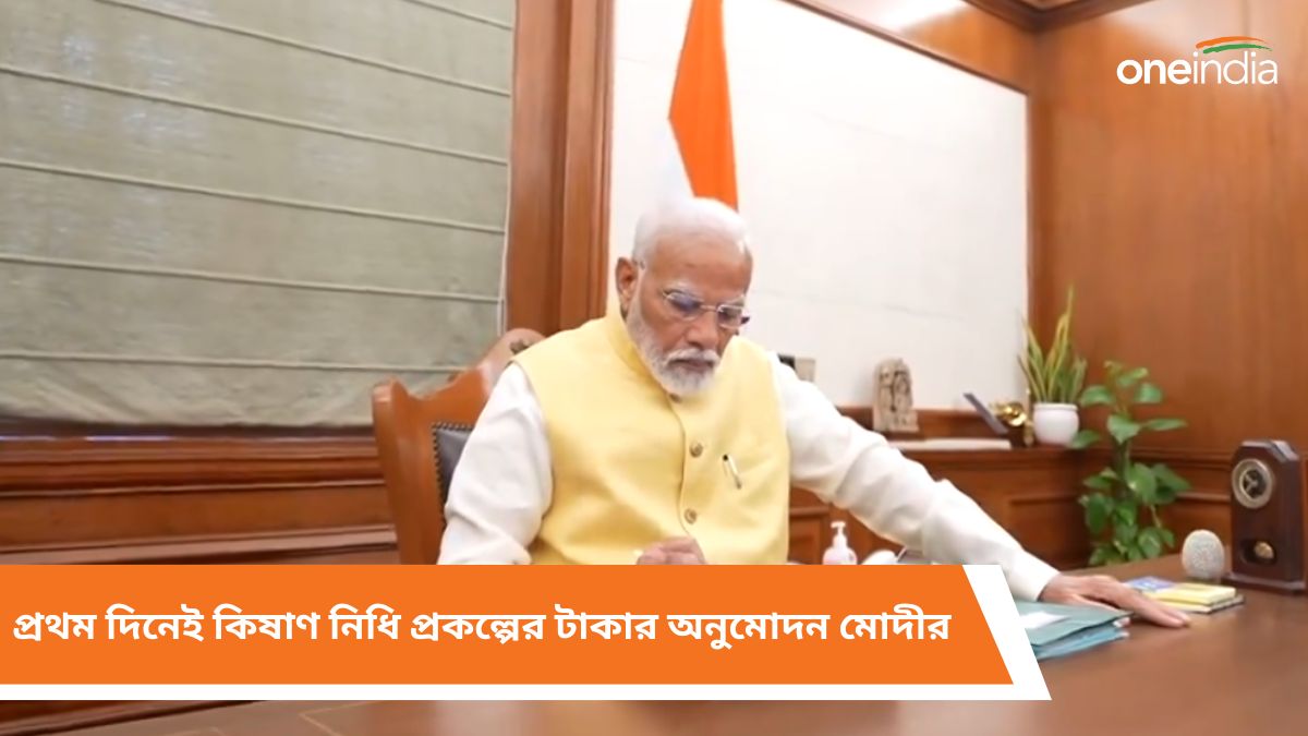 প্রথম দিন দফতরে গিয়েই যে ফাইলটিতে তিনি সই করেছেন সেটি কিষাণ নিধি প্রকল্পের ফাইল। দেশের ৯.৩ কোটি কৃষকের জন্য ২০,০০০ কোটি টাকা বরাদ্দ করা হয়েছে। লোকসভা ভোটের কারণে এতোদিন আটকে ছিল কৃষকদের এই অনুদান। ভোট মিটতেই আগে কৃষকদের অগ্রাধিকার দিয়ে এই প্রকল্পের অর্থ বরাদ্দে অনুমোদন দিলেন প্রধানমন্ত্রী মোদী।
