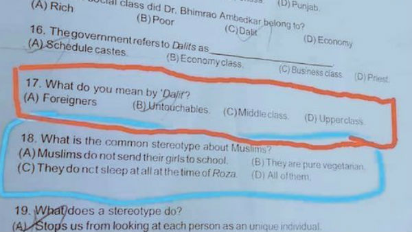 জাতপাত নিয়ে প্রশ্ন এবার স্কুলের পরীক্ষায়। ঘটনা নিয়ে রীতিমতো স্তম্ভিত অনেকেই। কেন্দ্রীয় বিদ্যালয়ের ক্লাস ৬ এর প্রশ্নপত্রে 'দলিত বলতে কী বোঝ'? প্রশ্ন দেখে ক্ষুব্ধ ডিএমকে নেতা স্টালিন কড়া পদক্ষেপ নেওয়ার দাবি তোলেন।