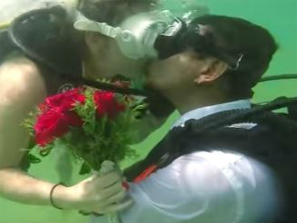স্লোভাকিয়ার এক মহিলার সঙ্গে আংটি বদল করে, বিয়ের সমস্ত প্রতিজ্ঞা নিয়ে বিবাহবন্ধনে আবদ্ধ হলেন, মহারাষ্ট্রের যুবক। তবে পুরোটাই হল জলের তলায়। ভারতে এই প্রথম।