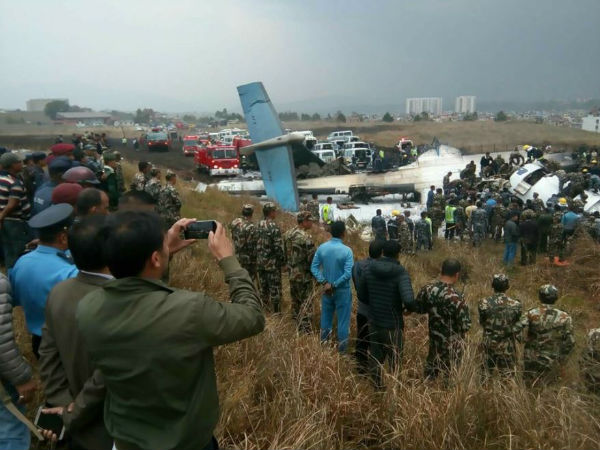 প্রত্যক্ষদর্শীদের দাবি, অবতরণের সময় প্লেনটি একটু কেঁপে ওঠে, এরপরই রানওয়ের কাছে একটি ফুটবল মাঠে গোত্তা খেয়ে মুখ থুবড়ে পড়ে যায়। ফুটবল মাঠে আছড়ে পড়ার সঙ্গেই সঙ্গেই বিমানে প্রবল জোরে বিস্ফোরণ হয়ে আগুন লেগে যায়। জানা গিয়েছে বিমানটি বাংলাদেশ এয়ারলাইন্সের। ঘটনাস্থলে উদ্ধারকাজে নেমেছে আপতকালীন বিপর্যয় মোকাবিলা বাহিনী। সেই সঙ্গে হাত লাগিয়েছে নেপাল আর্মি। আপাতত কাঠমাণ্ডু বিমানবন্দরে বিমানের ওঠা-নামা বন্ধ করা হয়েছে।