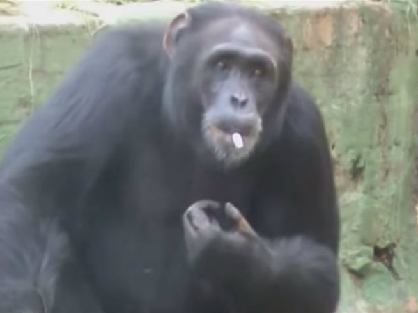 (ভিডিও) খাঁচায় বসেই সিগারেটে আমেজের সুখটান শিম্পাঞ্জির