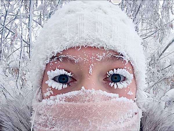 সোশ্যাল মিডিয়ায় এসেছে সাইবেরিয়ার বাসিন্দাদের কয়েকটি ছবি। যাতে দেখা যাচ্ছে ঠাণ্ডার জেরে চোখের পাতাতেও বরফ জমতে শুরু করে দিয়েছে। এ ছবি দেখে মনে পড়ে যেতেই পারে ডিজনির 'ফ্রোজেন ' ছবির কথা।
