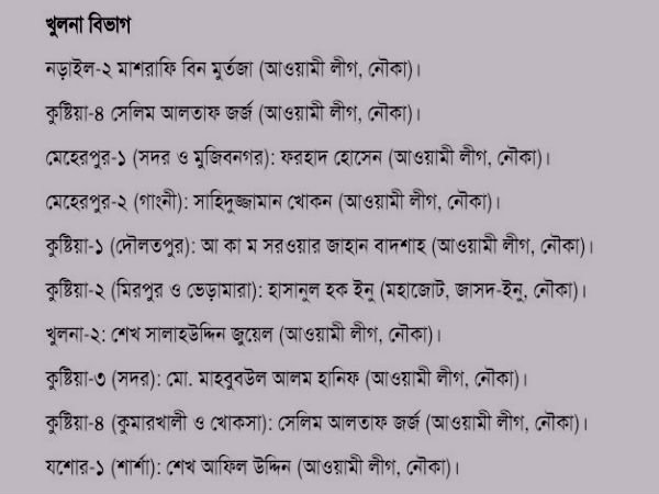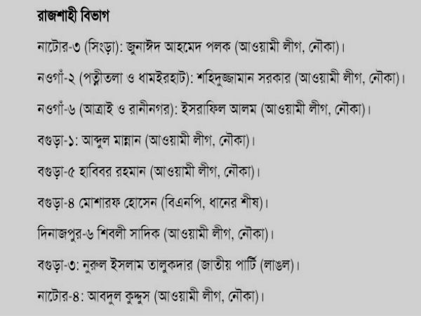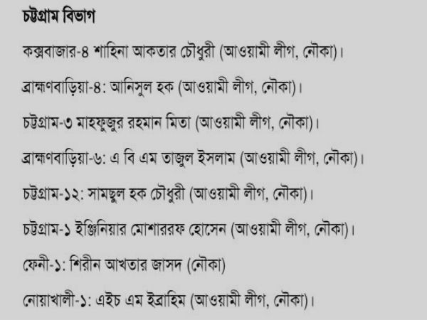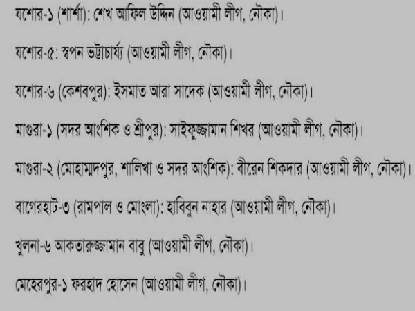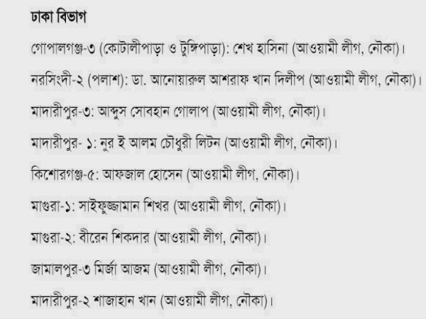 ২৯৯ আসনের মধ্যে ২৮৮টি আসনেই জয়ী আওয়ামি লিগ জোট এবং বিএনপি জোট জয়ী মাত্র ৭টি আসনে, নির্দল প্রার্থীরা ৪টি আসনে জয়ী হয়েছে।