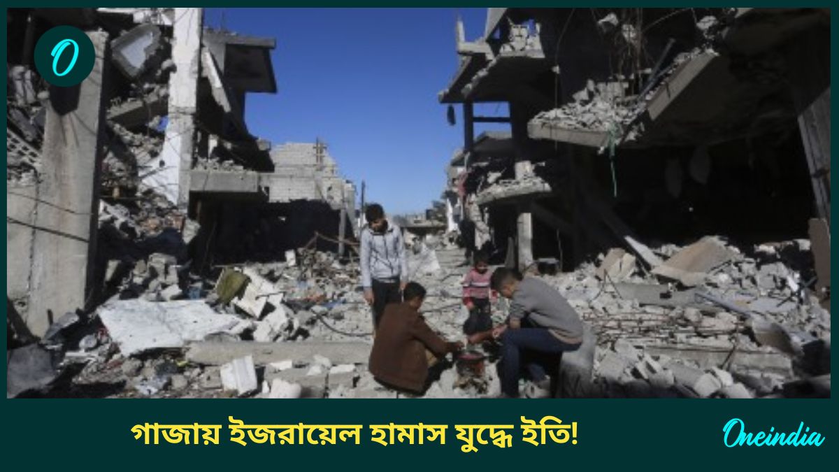 ২০২৩ সালের ৭ অক্টোবর ইজরায়েলে হামাস জঙ্গিদের হামলার পরই পাল্টা গাজায় ধ্বংসাত্মক হামলা চালায় ইজরায়েল। প্রায় ১২ হাজার সেনার মৃত্যু হয়েছে যুদ্ধে। ২৫০ জন নিরীহ মানুষকে পণবন্দি করেছে হামাস জঙ্গিরা। গাজার স্বাস্থ্যমন্ত্রকের দাবি, ইজরায়েলি হামলায় নিহত হয়েছেন প্রায় ৪৬ হাজার মানুষ। বহু মানুষ ভিটেমাটি হারিয়ে শরণার্থী শিবিরে আশ্রয় নিতে বাধ্য হয়েছেন। অবশেষে সেই রক্তক্ষয়ী সংঘর্ষের শেষ দেখতে চলেছে গোটা বিশ্ব।