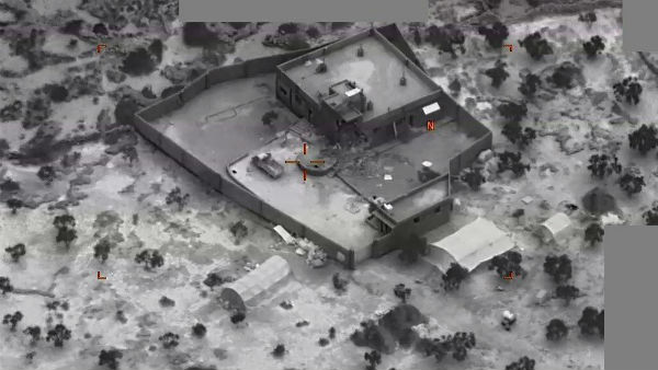 মার্কিন সেনার হেডকোয়াটার্স পেন্টাগনের তরফে প্রকাশিত ভিডিওতে দেখা যাচ্ছে, সিরিয়ার রুক্ষ মরুভূমিতে একটি জনমানবহীন জায়গায় একটি বাড়ি। সেই বাড়ি কার্যত মরুপ্রাসাদ। বাড়ির চারদিকে ঘেরা রয়েছে উঁচু পাঁচিল। সেই জায়গার সামনেই দেখা যাচ্ছে কালো কালো কিছু বিন্দু যেন হাঁটাচলা করছে। মূলত ওই 'কালো বিন্দু'ই মার্কিন সেনা।