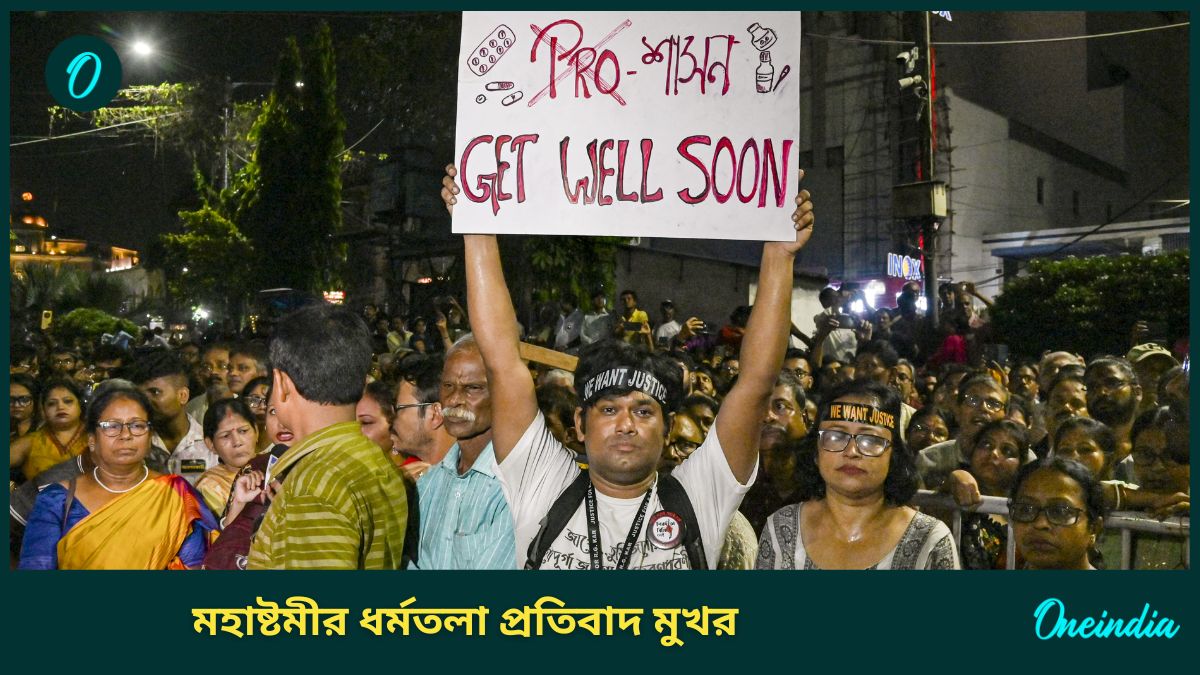 Junior Doctors' Hunger Strike: মহাষ্টমীতে উৎসবের মধ্যগগনে সপ্তমে প্রতিবাদ আন্দোলনের সুর। দুর্গাপুজোর অন্যরকম এক মহাষ্টমী দেখল মহানগর। মণ্ডপ নয়, মহাষ্টমীর রাতে জনসমুদ্র দেখা গেল ধর্মতলার অনশন মঞ্চে (Junior Doctors Protest)। জুনিয়র ডাক্তারদের সমর্থনে জনতার ঢল। অষ্টমীর রাতে প্রতিবাদ মুখর ধর্মতলা। রাজপথে বিচারের দাবিতে স্লোগান (Justice Slogan)।