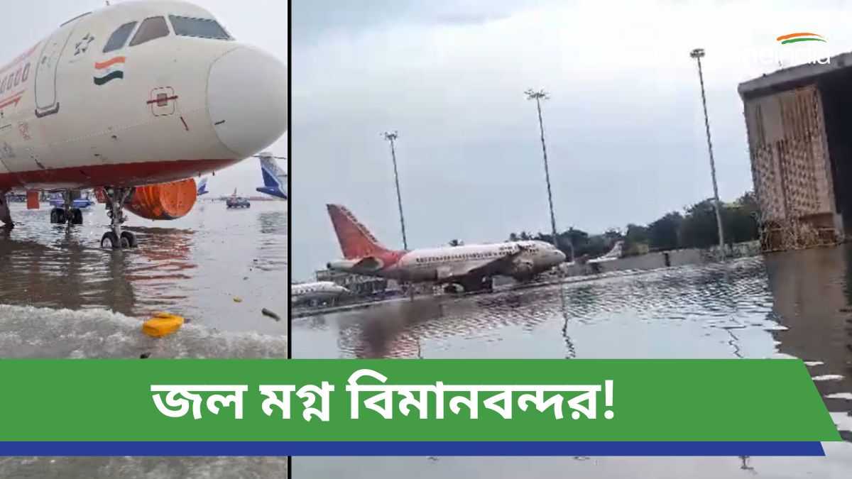 kolkata Airport: জলমগ্ন বিমানবন্দর, জলের মধ্যেই পর পর দাঁড়িয়ে বিমান, রইল Video