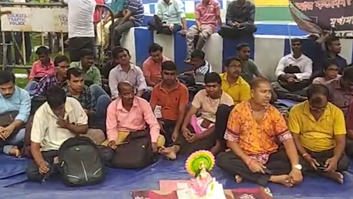 কিন্তু চাকরি প্রার্থীদের জীবন সম্পূর্ণই আঁধারে। কোনওভাবেই তারা ন্যায্য চাকরি পাচ্ছেন না। আজ শনিবার লক্ষ্মীপুজোর দিন ডব্লুবিসিএসএসসি গ্রুপ সি এবং ডি ঐক্যমঞ্চ আন্দোলনে অভিনবত্ব আনে। আজ অবস্থান বিক্ষোভের ৪৩১ তম দিন। আজ লক্ষ্মীপুজোর দিনে তারা মা লক্ষ্মীকেই হাজির করেছেন তাদের মঞ্চে।