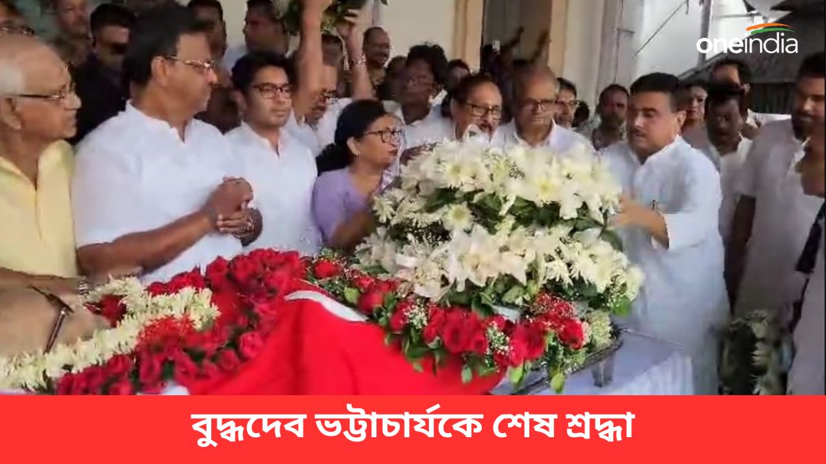 একসঙ্গে তাঁরা দুজন এক জায়গায় উপস্থিত রয়েছেন? সুদূর অতীতে কেউ কখনও ভাববে কি? এই প্রশ্ন উঠতেই পারে। কিন্তু সেই ঘটনা দেখা গেল রাজ্য বিধানসভায়। আর তার অন্যতম বড় কারণ বুদ্ধদেব ভট্টাচার্যকে শ্রদ্ধা জানানো।। রাজ্যের বিরোধী দলনেতা শুভেন্দু অধিকারী শেষ শ্রদ্ধা জানিয়ে গেলেন বুদ্ধদেব ভট্টাচার্যকে। বিজেপির অন্যান্য বিধায়করাও একে একে শ্রদ্ধা জানালেন রাজ্যের প্রাক্তন মুখ্যমন্ত্রীকে।