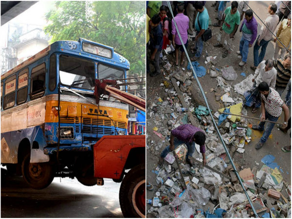 গড়িয়াহাটে দুর্ঘটনা, বেপরোয়া বাস উঠে গেল ফুটপাথে