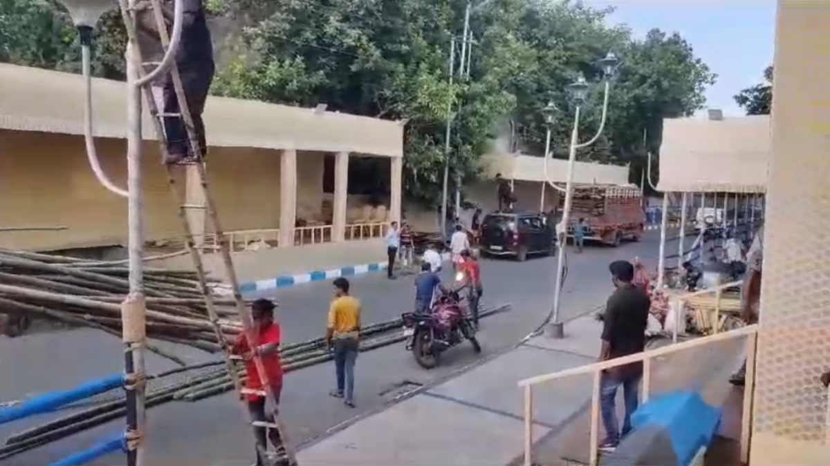 আগে মঞ্চে সিঁড়ির ব্যবস্থা থাকত। এবার সিঁড়ি থাকছে না। ঢালু রাস্তা বানানো হচ্ছে মঞ্চে ওঠানামার জন্য৷ মুখ্যমন্ত্রীর পায়ে চোট রয়েছে। হাঁটাচলার সমস্যা হচ্ছে তাঁর। সেজন্যই এই ব্যবস্থা। এমনই জানা যাচ্ছে।