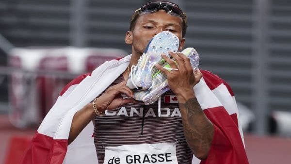 দে গ্রাস ২০১৫ সাল থেকেই বিশ্বের বড় আসরগুলিতে কোনও না কোনও পদক জিতে আসছেন। ২০১৬ সালে রিও অলিম্পিকে তিনি ২০০ মিটারে রুপো জিতেছিলেন, বোল্টের সঙ্গে পেরে ওঠেননি। ২০১৯ সালে বিশ্ব চ্যাম্পিয়নশিপে দে গ্রাস দোহায় ২০০ মিটারে রুপো জিতেছিলেন। এদিন তিনি ফাইনালে উঠেছিলেন জাতীয় রেকর্ড গড়ে, সময় নেন ১৯.৭৩ সেকেন্ড। যা রিও অলিম্পিকে তাঁর সময়ের চেয়ে ০.০৭ সেকেন্ড কম। ফাইনালে নিদের রেকর্ডকে আরও উচ্চতায় তুলে নিয়ে গেলেন। সোনা জয়ের পর দে গ্রাস বলেন, এই মুহূর্তটার জন্যই অপেক্ষা করছিলাম। এই মুহূর্তের জন্যই কঠোর পরিশ্রম করেছি। দিন তিনেক আগে টোকিও অলিম্পিকের ১০০ মিটারে ব্রোঞ্জ জিতে কিছুটা হতাশই হয়েছিলাম। আমার আরও ভালো করা উচিত ছিল। তখনই নিজেকে প্রত্যয়ী করে বুঝিয়েছিলাম, ২০০ মিটারে সোনা জয়ের লক্ষ্যেই নামতে হবে এবং জিততে হবে। আমি জানতাম মার্কিনদের কড়া চ্যালেঞ্জের মুখে পড়তে হবে। তাঁদের কথা ভেবেই হয়তো নিজের সেরা রেকর্ডটিও এদিন গড়তে পেরেছি, এই প্রতিযোগিতামূলক মনোভাবেই সেরাটা বেরিয়ে এসেছে। পাঁচ বছর পর এখানেই নিজের সেরা সময় করলাম। সবমিলিয়ে শেষে সোনা জেতার লক্ষ্যপূরণ করতে পেরে ভালোই লাগছে।