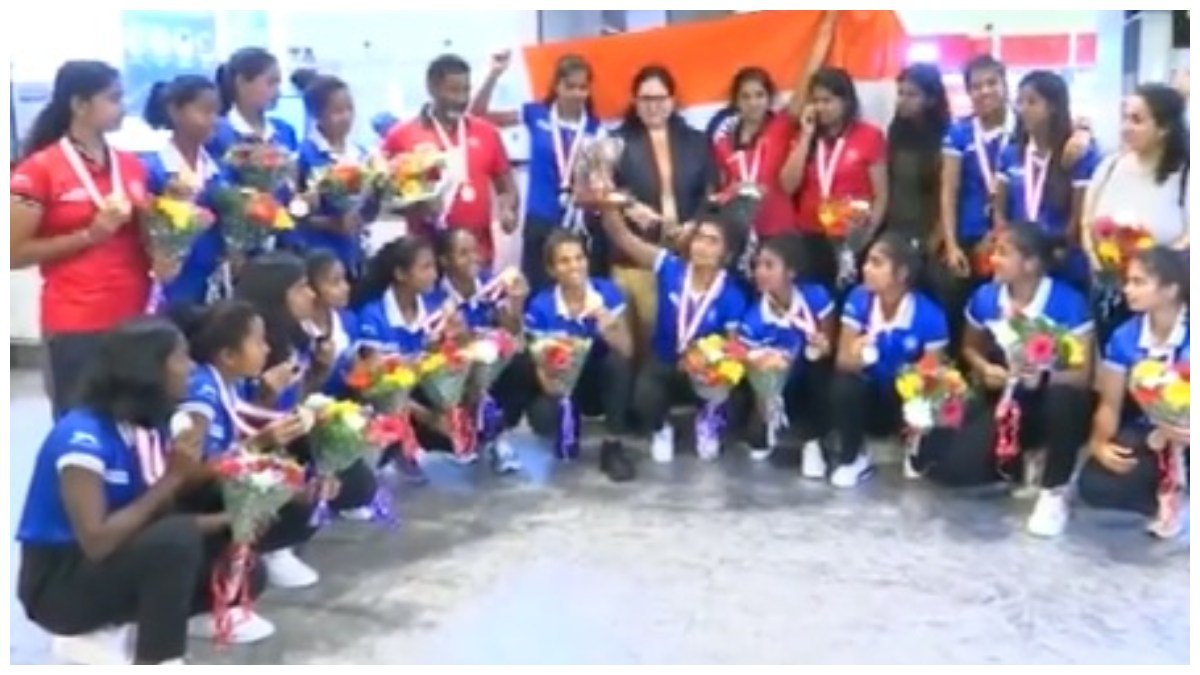 #WATCH | India’s Women's Junior Hockey Team receives a warm welcome as they arrive in Bengaluru after winning the Women's Hockey Junior Asia Cup pic.twitter.com/vc1j6csKHw
