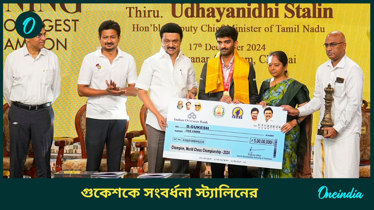 সোমবার তাঁকে রাজকীয়ভাবেই স্বাগত জানানো হয়, মঙ্গলবার মেগা সংবর্ধনা দেওয়া হল গুকেশকে। মঙ্গলবার সন্ধ্যায় তামিলনাড়ু সরকারের পক্ষ থেকে সংবর্ধনা দেওয়া হল গুকেশকে। চিপক স্টেডিয়ামে গুকেশের সংবর্ধনা সভার আয়োজন করা হয় তামিল সরকারের পক্ষ থেকে। সেখানে উপস্থিত ছিলেন রাজ্যের মুখ্যমন্ত্রী এমকে স্ট্যালিন সহ সরকারের অন্য মন্ত্রী এবং উচ্চ পদস্থ আমলারা।