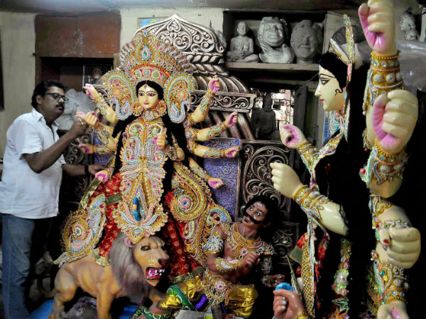 মহালয়ার রীতি মেনে শাঁখ কাসর ঘণ্টা উলু-ধ্বনির মধ্য দিয়ে হয়ে গেল মহিষাসুরমর্দিনীর চক্ষুদান পর্ব। এবার শুধু মণ্ডপে যাওয়ার অপেক্ষা। আর শেষ মুহূর্তে আরেকবার প্রতিমার রঙের ফিনিসিংটা দেখে নেওয়া, যাতে পুজো উদ্যোক্তারা কোনও রকমভাবে কথার ফাঁদে না ফেলতে পারে। কলকাতার পাশ্ববর্তী জেলাগুলিতে মহালয়া থেকেই প্রতিমা যাওয়ার পালা শুরু হয়ে গিয়েছে।