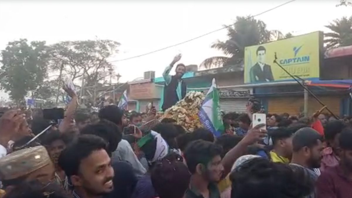 কর্মী-সমর্থকদের সবার বুকে সাঁটা নওশাদের ছবি। আর সেখানে লেখা- “শিরায় শিরায় রক্ত আমরা ভাইজানের ভক্ত।”